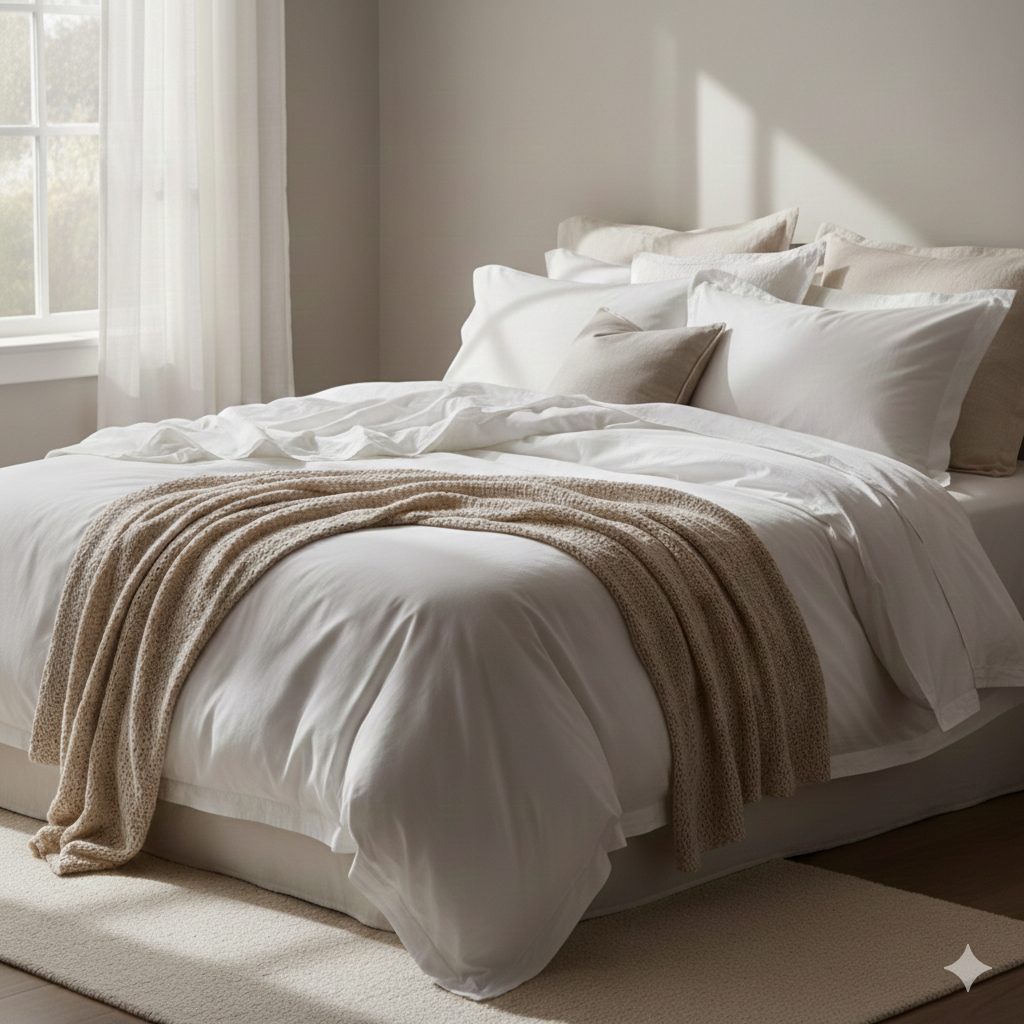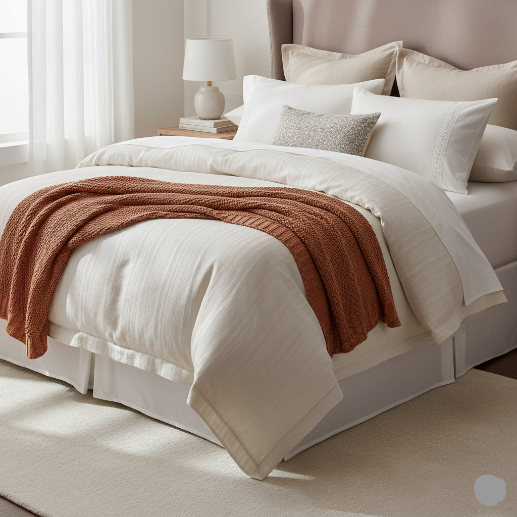 Explore our carefully curated collection ofrest essentials, cloud-like textures, and timeless linens.Find the perfectatmosphere for every nightand express yourpersonal sense of comfortwith confidence.